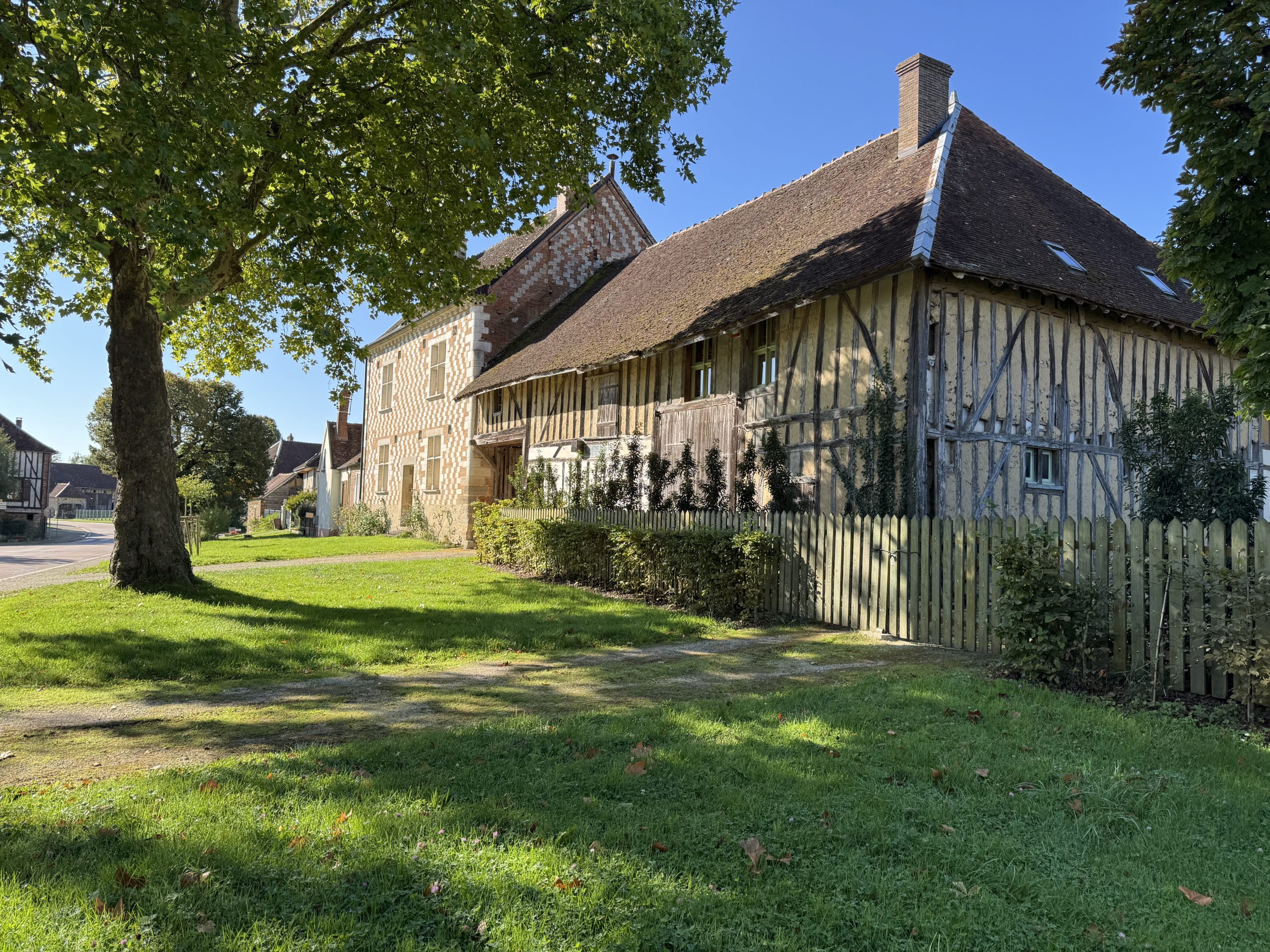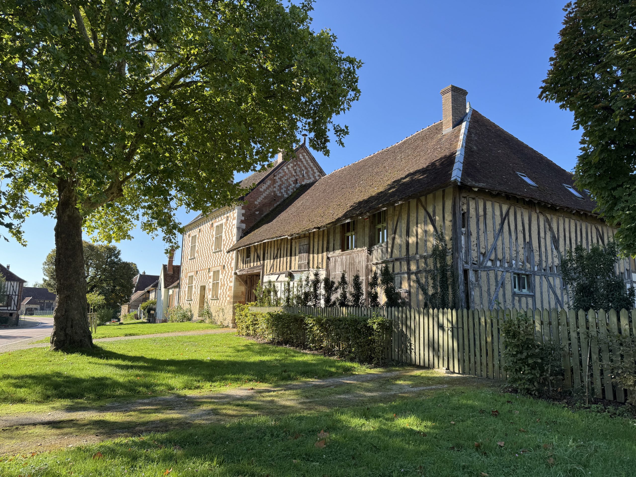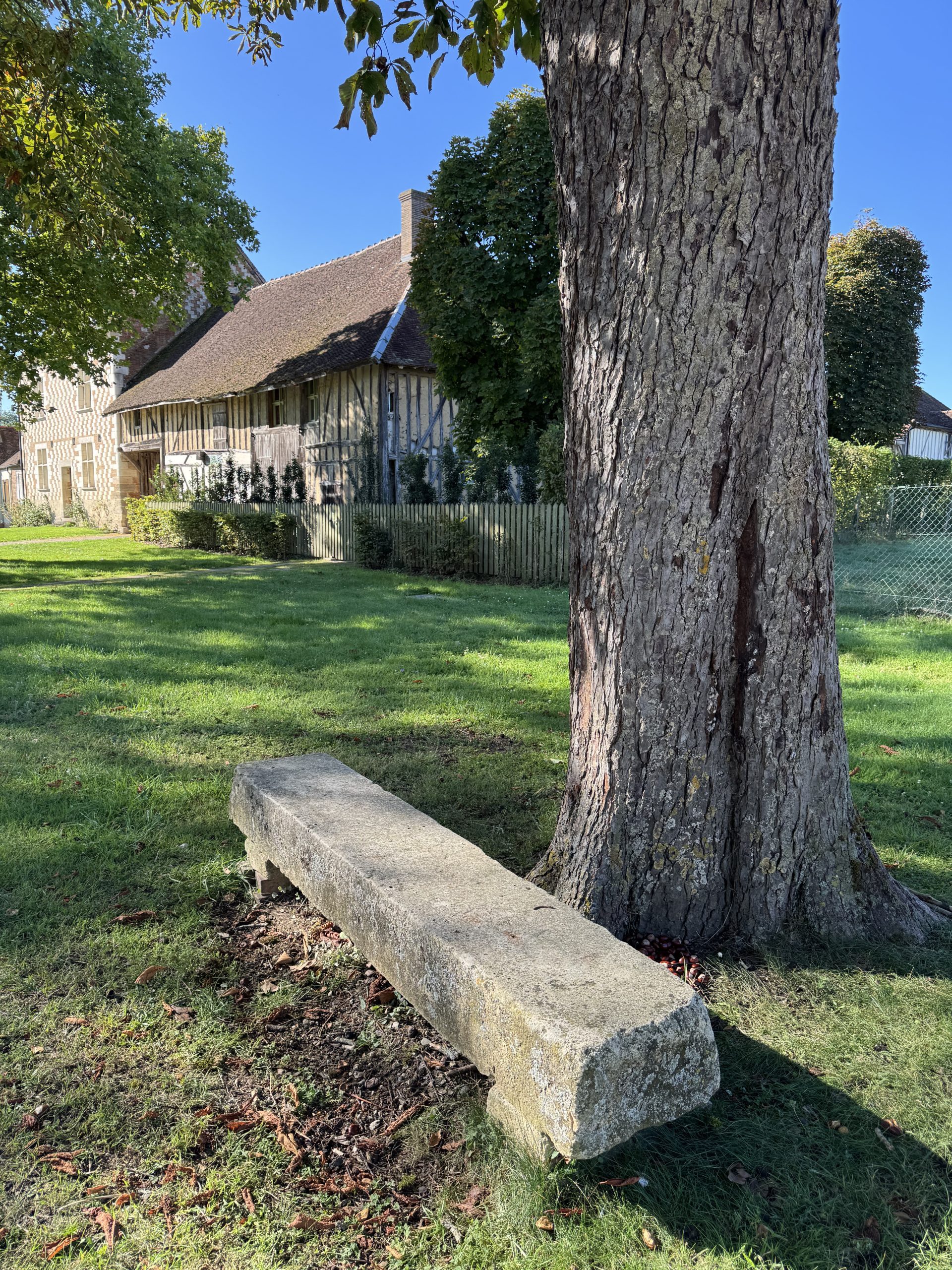 Le lieu dégage une atmosphère paisible et bucolique, typique des villages champenois traditionnels. La lumière douce filtre à travers les feuillages d’arbres majestueux, projetant des ombres sur la pelouse. L’architecture à colombages, aux couleurs naturelles et aux matériaux bruts, invite à la contemplation et à un retour aux choses simples. Il y règne une impression de calme, d’authenticité et d’intemporalité.
